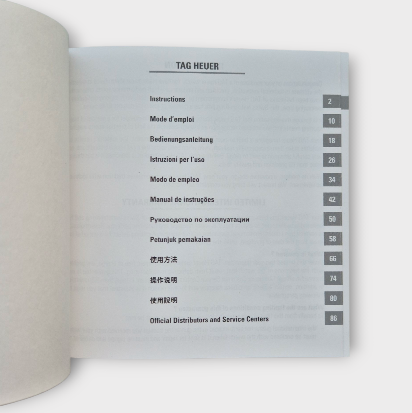 This genuine TAG Heuer instruction manual is a must-have for collectors or enthusiasts looking to complete their set of original accessories. It also provides valuable instructions to maximize the utility of your watch. Perfect for those who want to fully enjoy using the functions and benefits of their TAG Heuer watch.