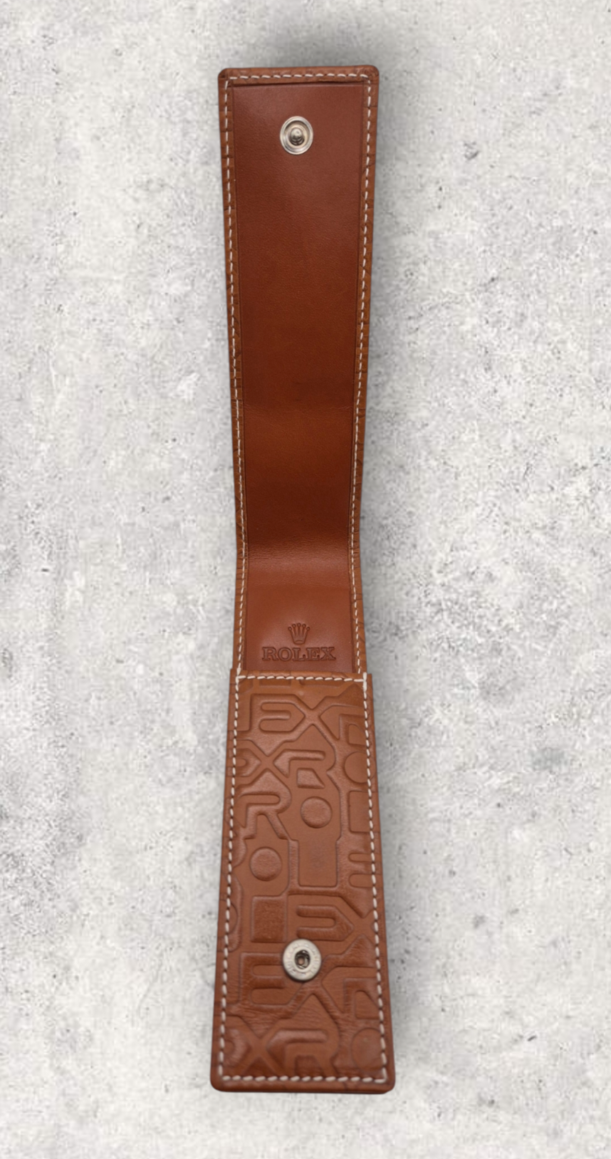 It features a slim profile, gold plating and the iconic Rolex branding on the side and top. It comes with a Rolex branded tan leather pen pouch adorned with a jubilee dial design, perfect for the sophisticated and exclusive individual.